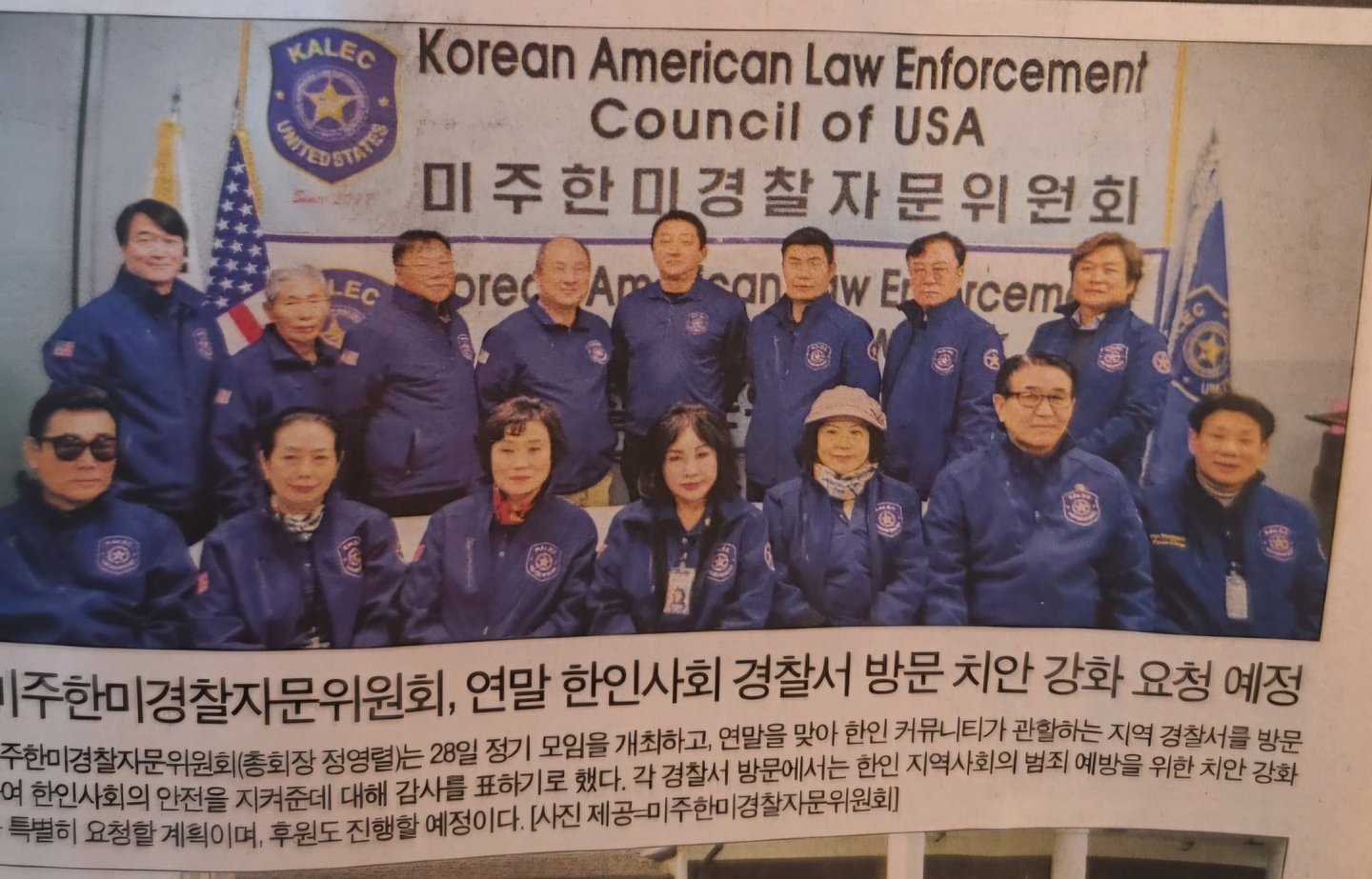 미주한미경찰자문위원회(총회장 정영열)은 28일 정기 월례회를하였고 연말에 지역 경찰서를 방문하여 지역사회 안전에 공헌함에 감사를 표하기로했다. 특히 범죄예방을 위한 치안 강화를 요청할 계획이며 여러가지 후원도 진행할 예정이다.