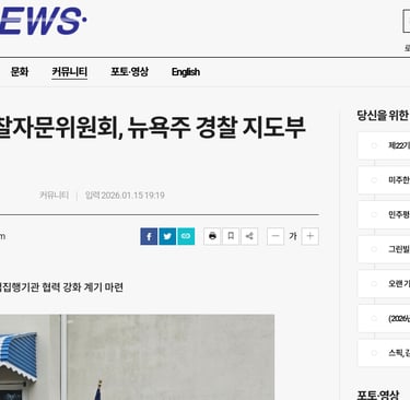 미주한미경찰자문위원회는 한인 커뮤니티와 미국 내 법 집행 기관 간의 신뢰 구축에 중요한 역할을 하고 있습니다. 2026년 1월 14일, 뉴욕주에서 열린 회의에서 미주 한인 커뮤니티의 목소리를 대변하며 경찰과의 관계 강화 방안을 논의했습니다. 그 자리에서 로버트 캐론 뉴욕주 경찰서장협회 회장은 두 기관 간의 긴밀한 협력을 바탕으로 상호 신뢰를 더욱 확고히 하겠다고 다짐했습니다.